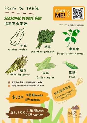 4. 我們每星期有固定菜款1斤和自選菜款1斤,自選菜款先到先得。7月固定菜款為冬瓜。其餘日子視乎當造菜情況。